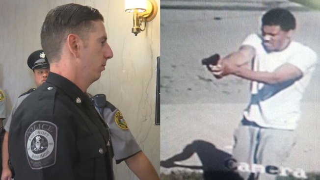 A Folcroft Police officer who survived a shooting two years ago opened fire at a murder suspect who was aiming a gun at him, investigators said.